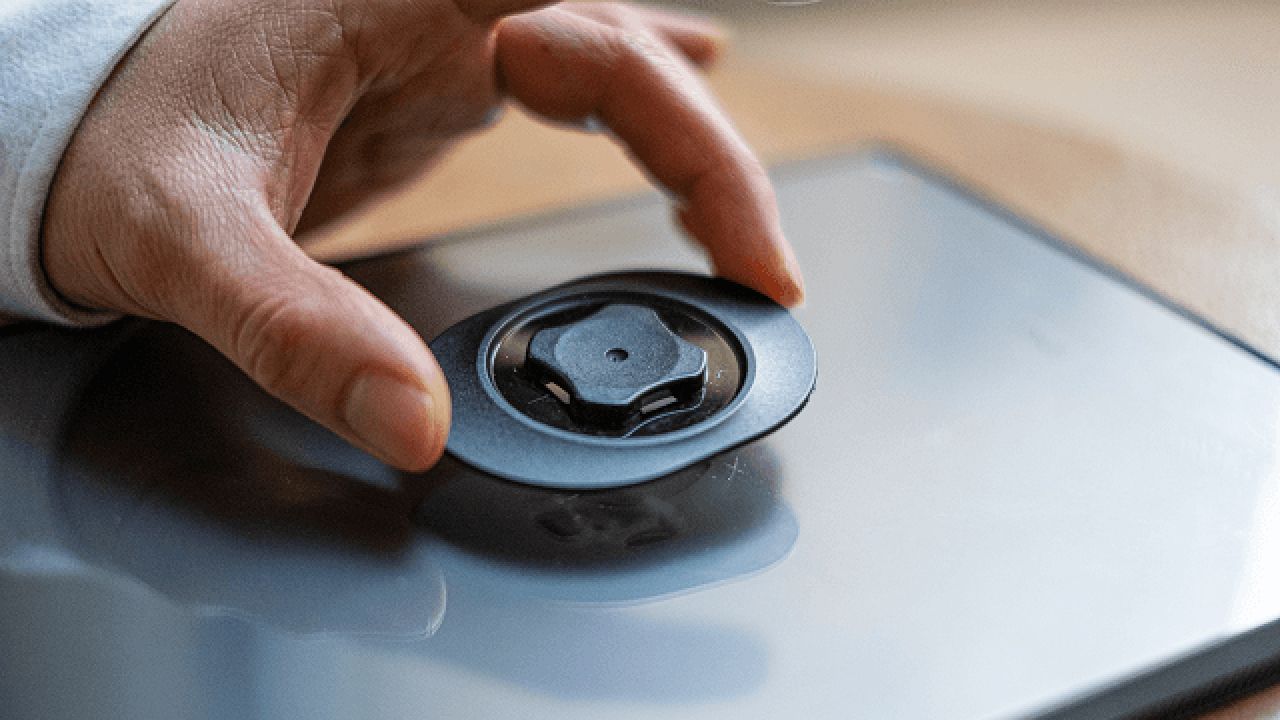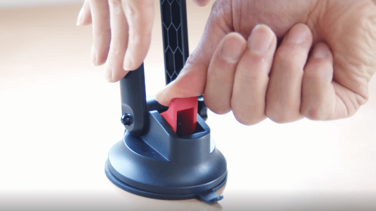 まず、強力なゲル吸盤の吸着型マウントパーツ。ロックレバーで真空状態をつくって固定するため、デスク、壁、窓、車のダッシュボードなど、色々な場所に何度でも取り外しながら使える。