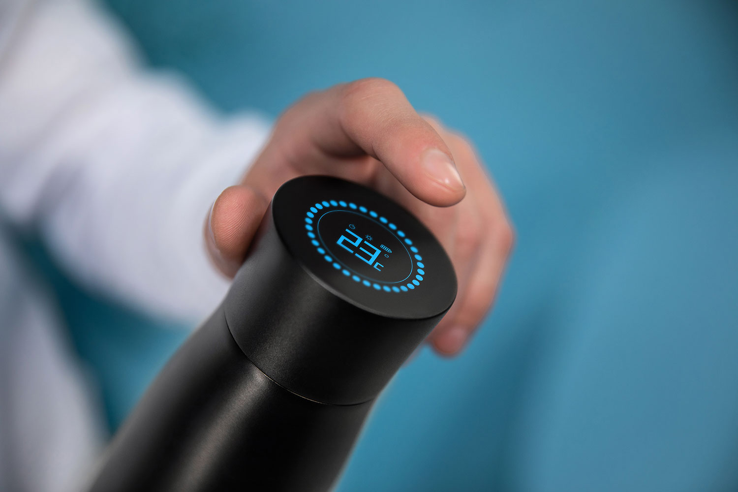 フタがディスプレイも兼ねており、飲み物の温度を表示する機能もある。熱々の飲み物で口の中をヤケドすることもなくなるだろう。