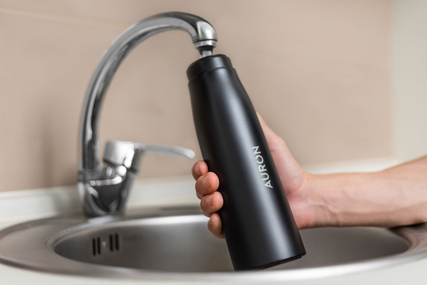 毎日飲む「水」をもっと安心できるものに。「Auron」は、UV-Cライトの力で水も本体もきれいに浄化してくれるウォーターボトル。