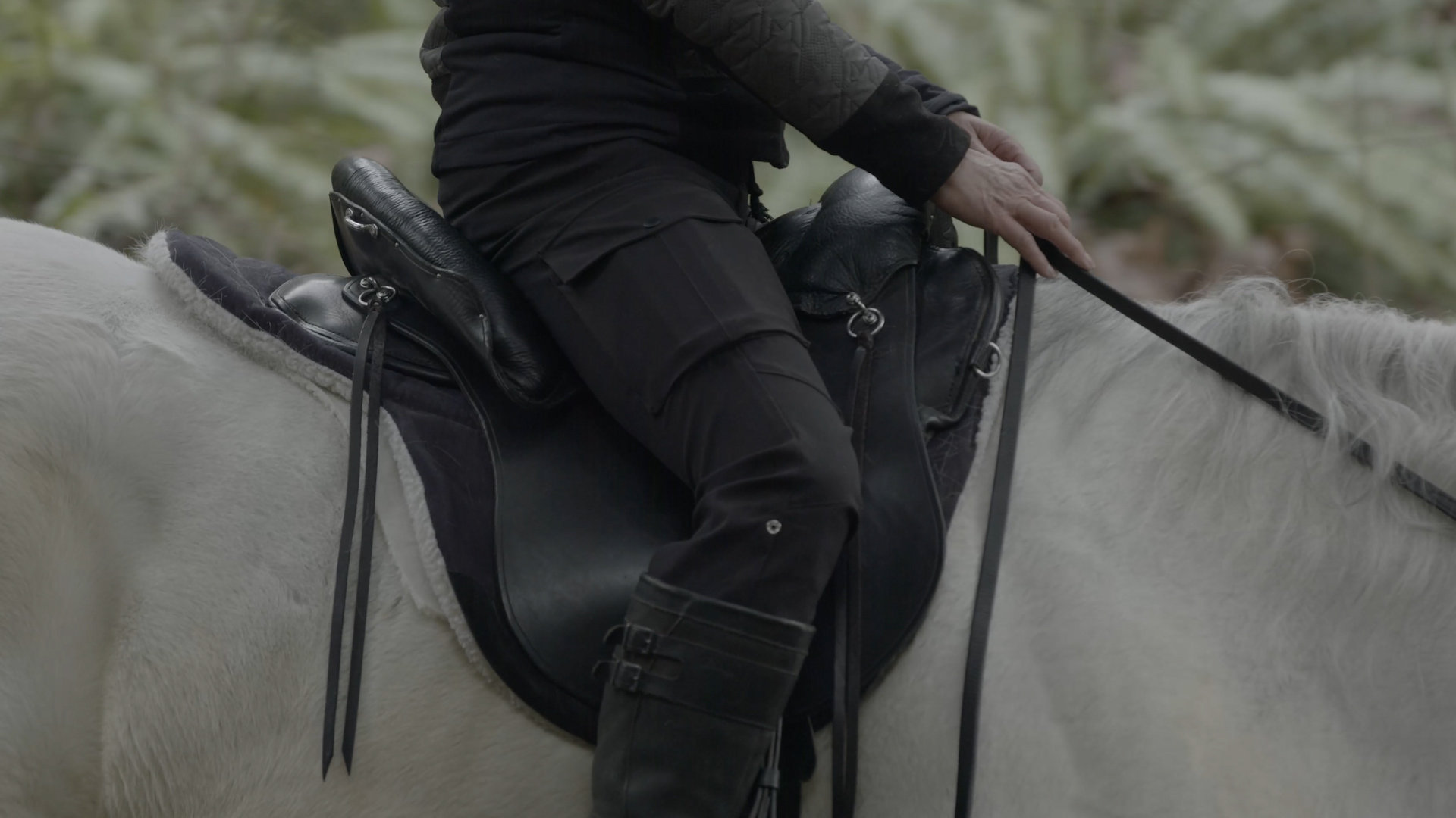 股下に大きなチャックがついているのに、そんなことは気づかないほどのフィット感。大きく足を開くようなクライミングや乗馬、自転車に乗っていてもチャックは気にならない。伸縮性や速乾性に優れた生地はアクティビティにもってこいだ。