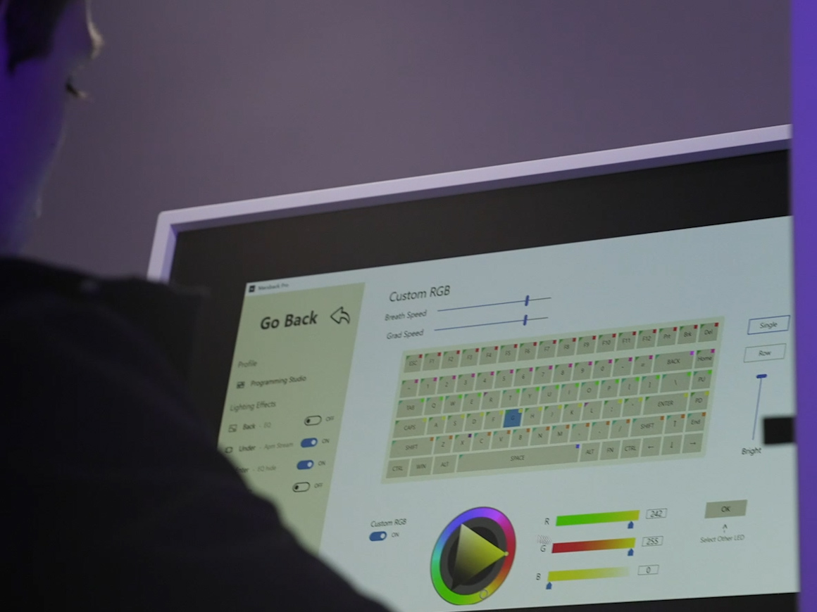 専用のソフトを使い、光り方やショートカットキーをさらにカスタマイズすることができる。音に合わせて光るパターンや入力によって光るパターンなどが選べて、ゲームプレイ中の雰囲気を盛り上げてくれる。さらに、キーマップやショートカットキーなども設定ができる。