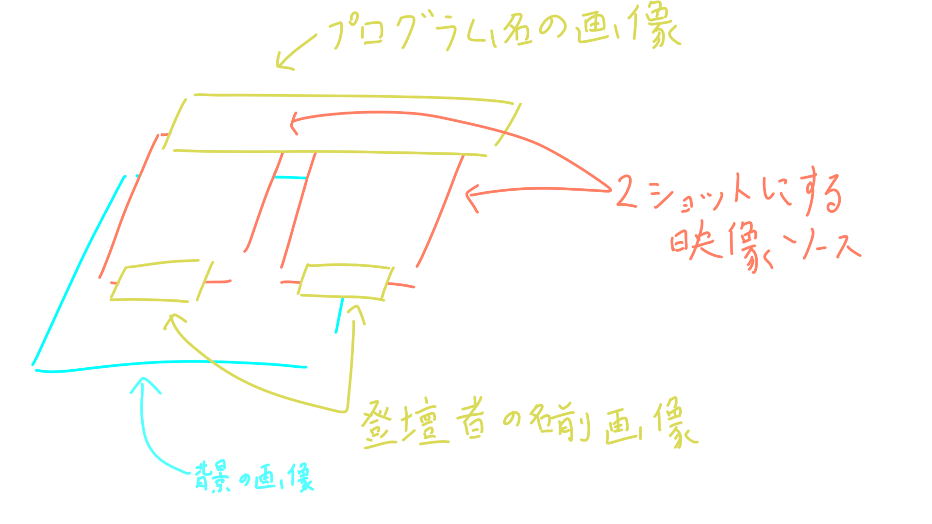 何が言いたいかというと、2ショットの画面を作るには、割とゴリゴリに無理やり映像ソースを用意する必要があります。