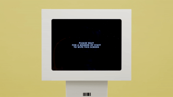 50人を超えると、店員を呼んで清掃を行うようメッセージが表示されるため、購入者はいつも安心して清潔な画面を操作することができる。