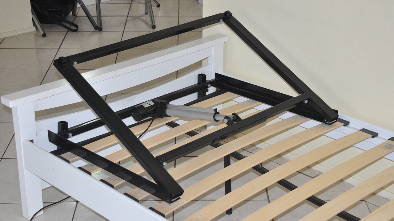 「BheemUp」は1つの電気モーターと5つのフレームパーツから成り、シングル・ダブル・キングなどどんなサイズのベッドにも幅を調整して取り付けられる。