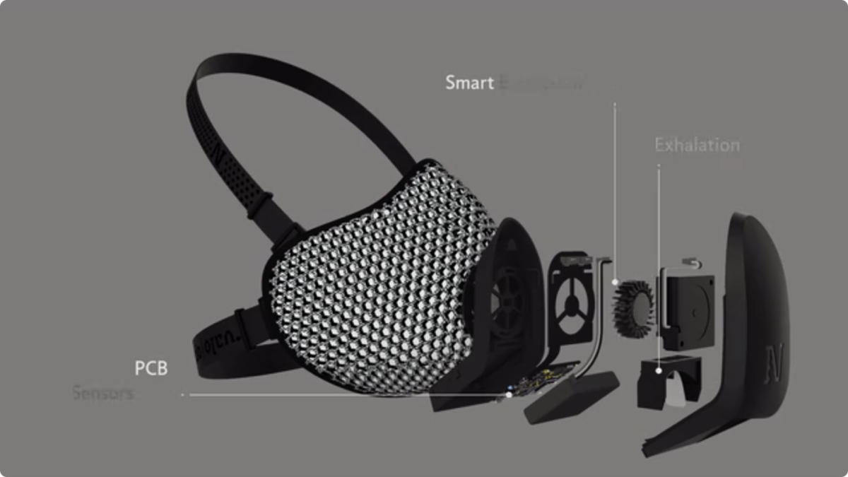 「Narvalo」は5層のフィルターを搭載し、口から摂取されるかもしれない有害物質をしっかりとろ過。さらにスマホからユーザーの呼吸の状態も記録できるというスマートマスクだ。