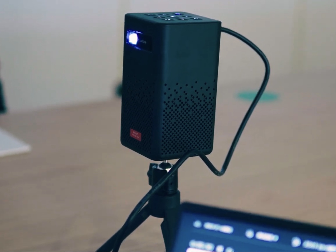Wi-Fiによるワイヤレス接続のほかHDMI端子、USB2.0も使用できる。角度を調節できるミニ三脚やリモコンなど付属品も充実。本体を横にすれば天井への投影もできる。また大容量の5200mAhを搭載しており、電源のない環境でも映画まるまる1本分の連続再生ができる。