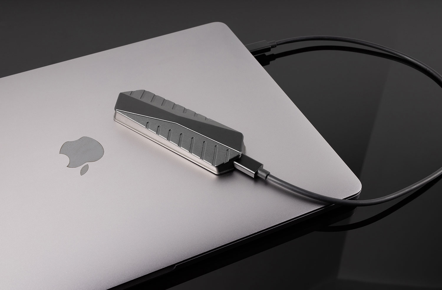 独自のアルミニウム設計により放熱性も高い。熱によって転送速度などのパフォーマンスが低下する可能性は低いという。
