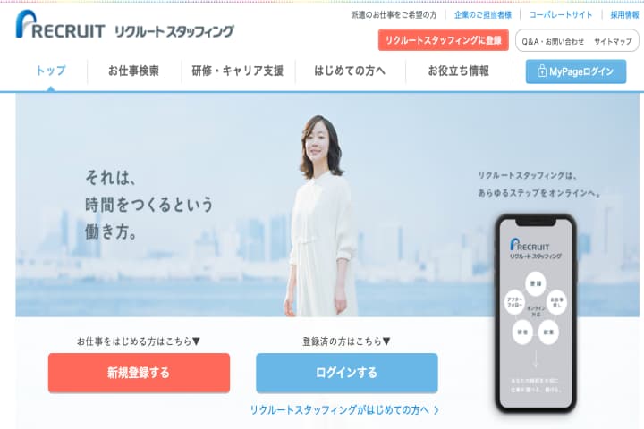 ・リクルートスタッフィングは107万人以上の有効登録者数を持つ人材派遣会社、全国に拠点があり、大手企業や人気企業の求人を多数保有している。