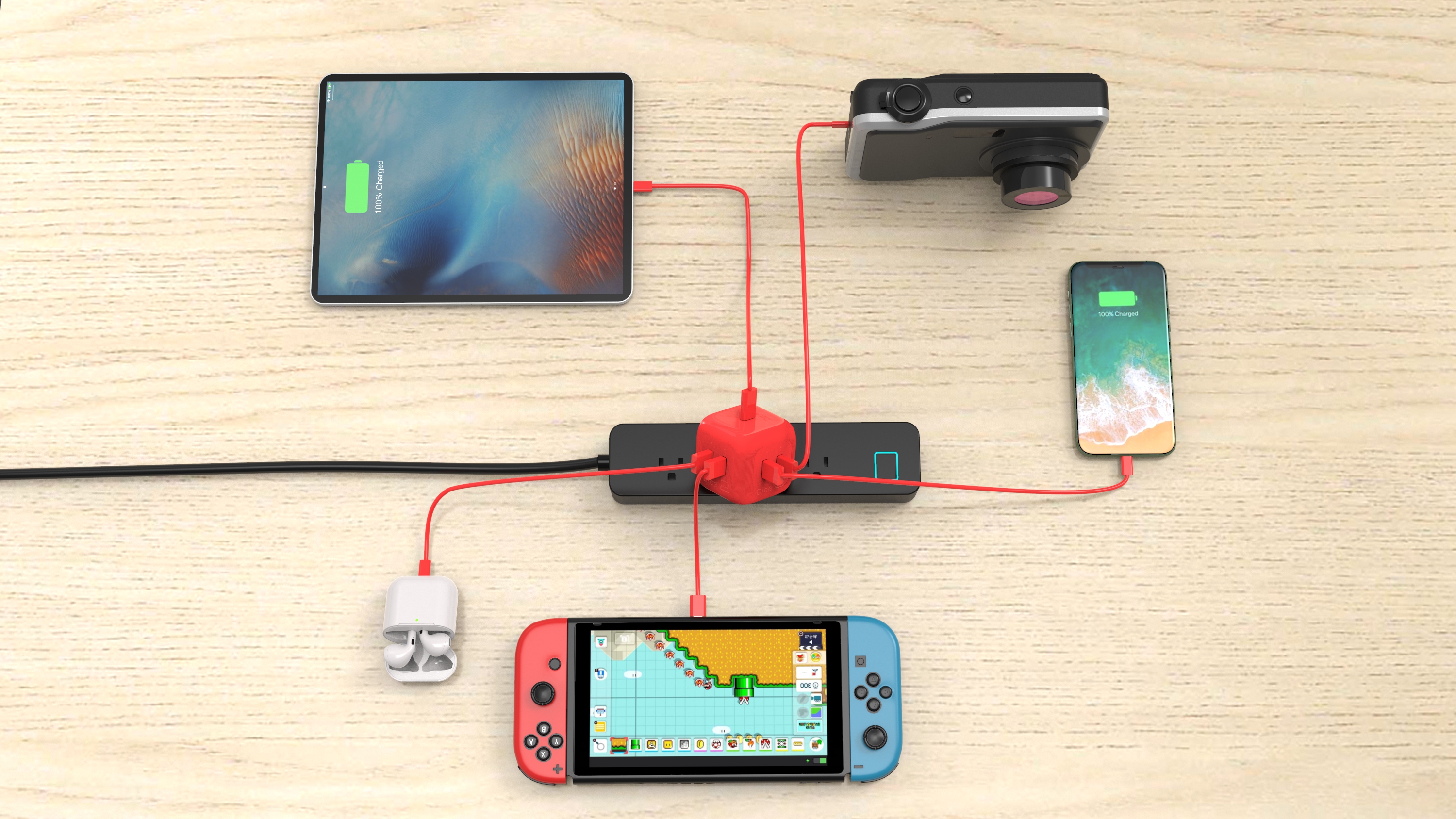 コンセントが1つあれば、同時に複数のデバイスに電源供給でき、タコ足配線のように絡まる心配もなし。