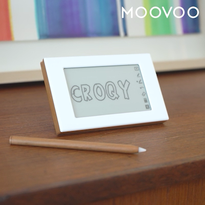 「Croqy」は手書きメモによるコミュニケーションデバイスです。付属のタッチペンで書いた手書きメモを、ボタン一つで他のCroqyに同期でき、外出先でもイラストや手書きのメッセージを見ることができます。専用アプリの入ったスマートフォンとも同期が可能です。