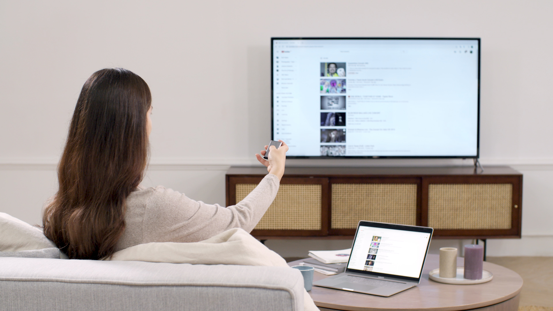 様々なハンドジェスチャーに対応し、直感的な操作をサポートする。10mまでの距離であれば、動き回りながらの操作もできてしまう。スマホやコンピューターをワイヤレスで操作できるため、パソコン画面を表示したテレビなどでも使える。デスクの前だけでなく、少し離れたところにあるソファでくつろぎながら操作、なんてことも可能だ。