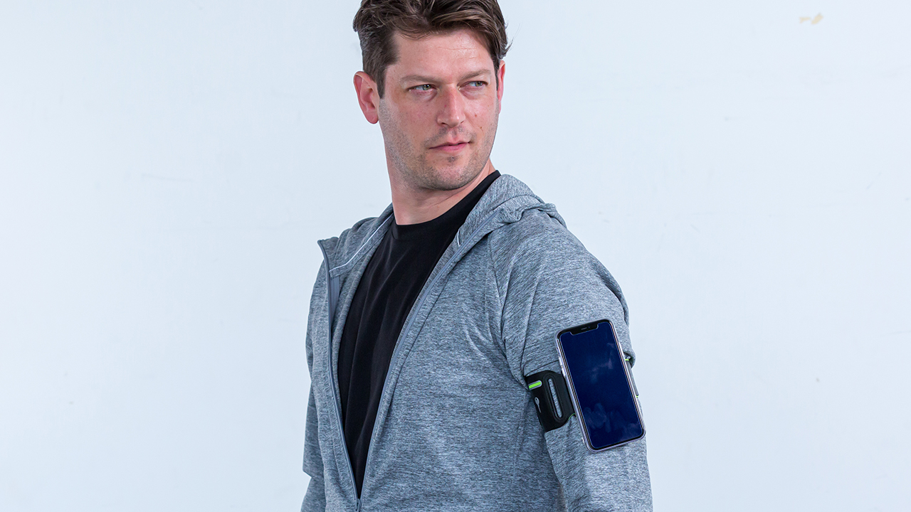 1つ目は、筋トレやランニングなどの用途に適した「アームマウント」。既存の腕用マウントは袋の中に入れるタイプが多く操作がしづらかったが、このアームマウントなら運動中も楽に操作できる。