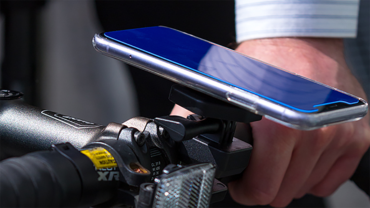 3つ目は、自転車のハンドルに取り付ける「バイクマウント」。地図アプリが使いやすく、激しいペダリングで落ちてしまうリスクも少ない。