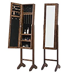 中には指輪やネックレスのほか、香水やマニュキュアといった化粧品類も収納できます。鏡の裏面にも、イヤリングや髪ゴムなどを引っ掛けられて便利です。