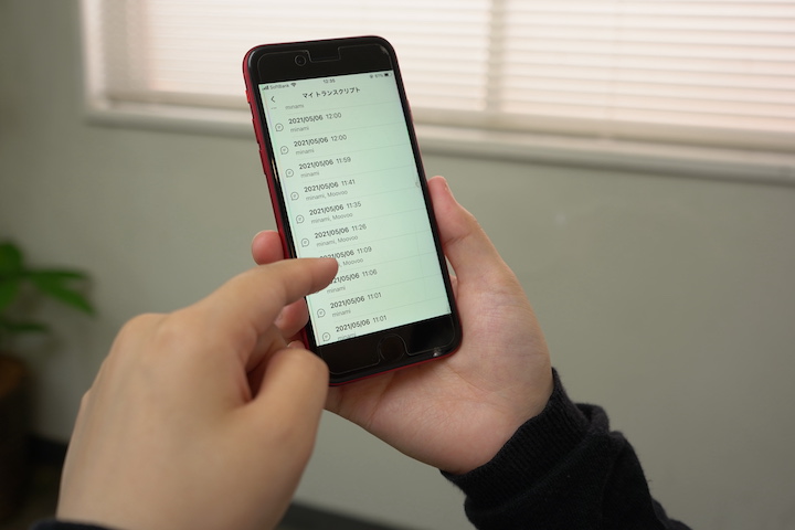 話し始めるとリアルタイムで文字起こしがスタートします。文字起こしされたテキストは各々のデバイスで確認可能です。