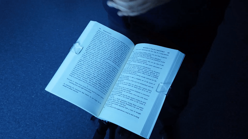 BOWIOは本の表紙と裏表紙をマグネットで挟み込む形でセットします。簡単に装着できて、外れにくい設計です。