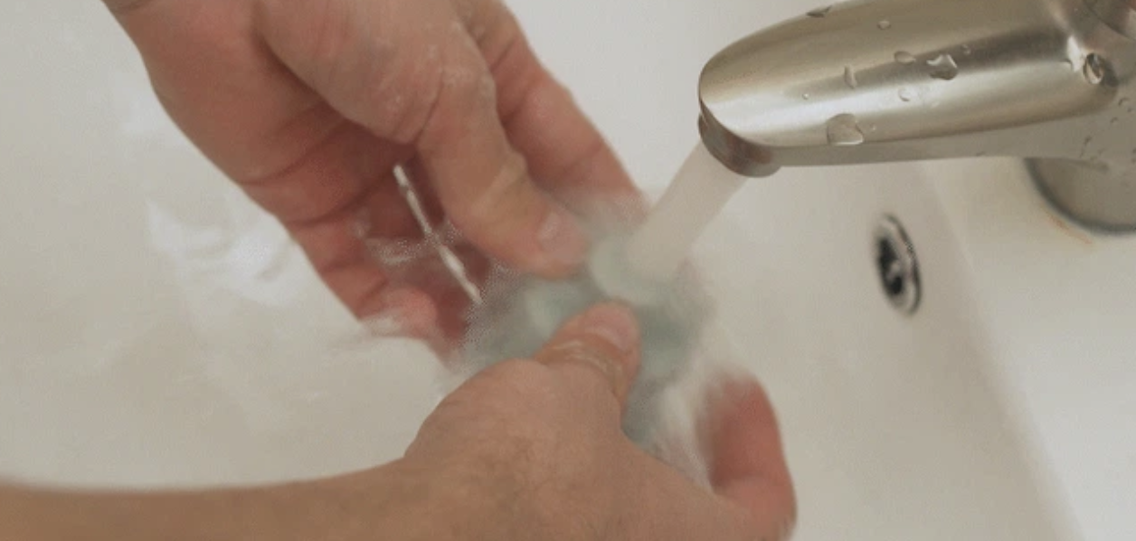 4. スイッチを押せば、2分間洗濯機のように回転し、綺麗に。