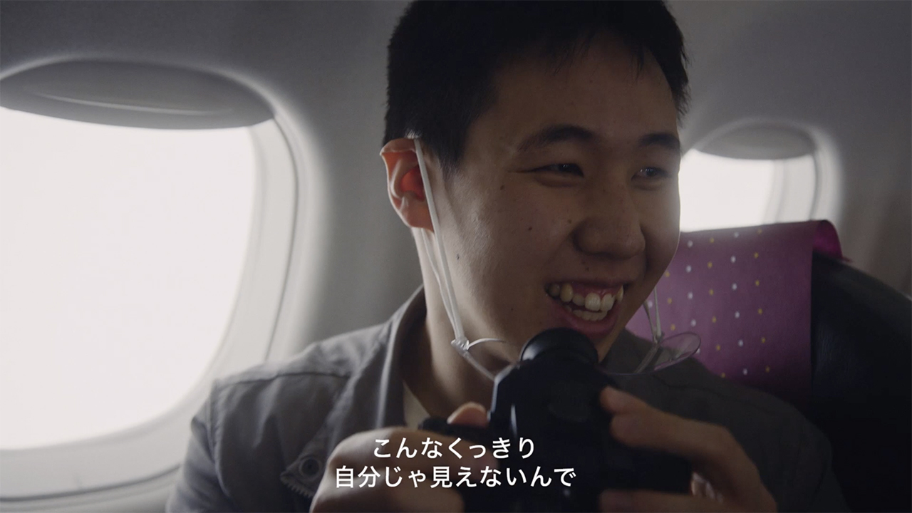 プロジェクト第2弾では、賛同企業J-AIRの協力のもと、3名のロービジョン者が飛行機に搭乗し、上空からの写真撮影に挑戦。