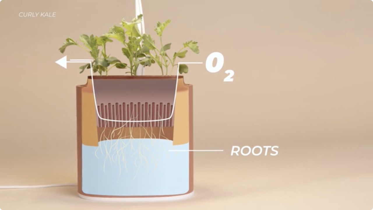 準備は植物の苗をセットし、苗から下に伸びる根を水につけるだけで完了する。空気の流れも考えられた作りで、タンクに水を貯めると基礎部分が少し浮いてくる設計。そのため一定以上まで水が溜まっていれば空気が循環される仕組みとなっている。