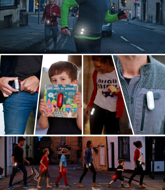 暗い時間帯のウォーキングやランニング時に、効果的に自身の存在を周囲に知らせることができる安全ライト「ミリオンマイルライト」。