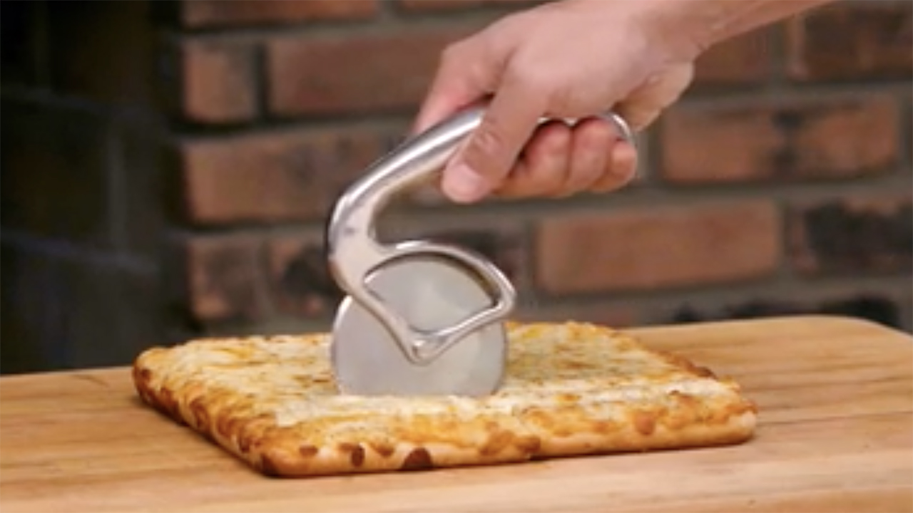ピザカッターといえば、手でハンドルを動かし刃を回転させることで、簡単にピザが切れる便利アイテム。