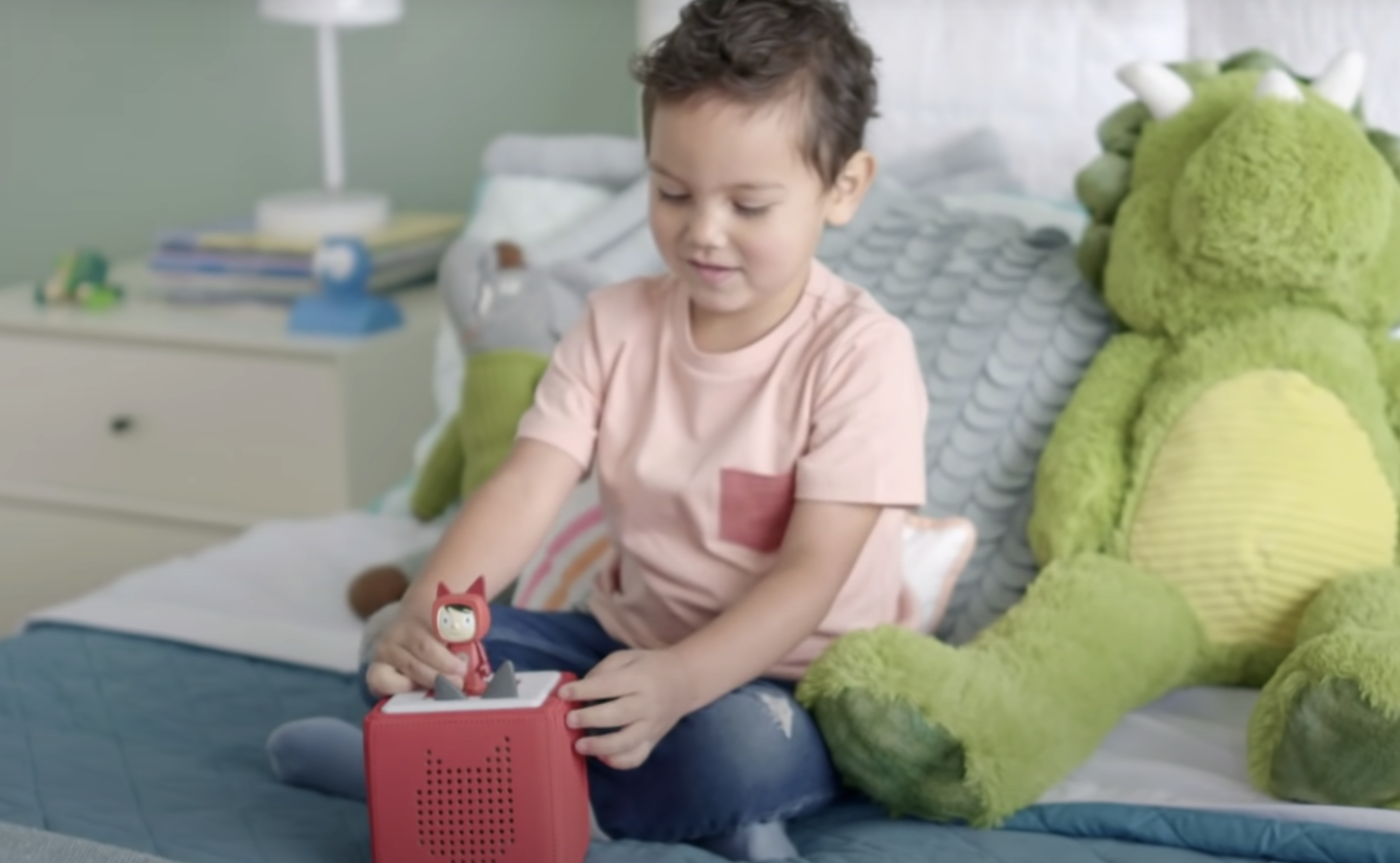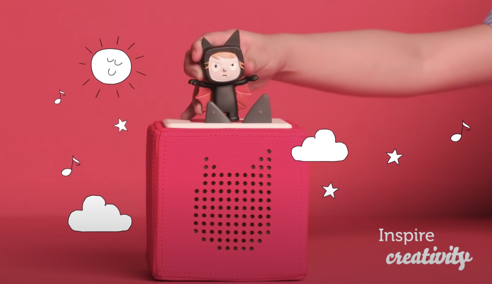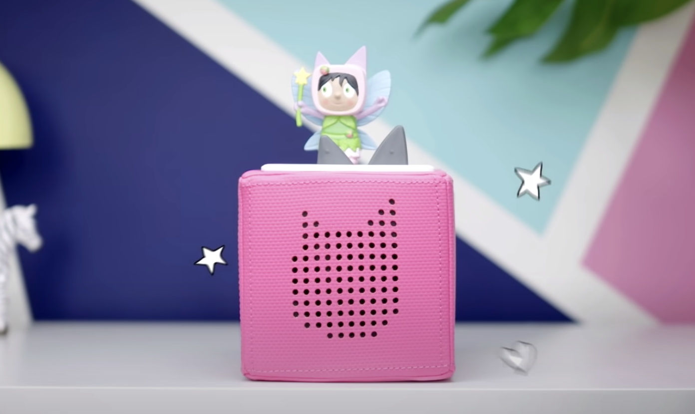 ドイツ企業が開発した「Toniebox」は、サイコロのような箱型の本体の上に「Tonies」という専用フィギュアを乗せると英語の音声で物語を読み聞かせてくれるオーディオ絵本です。