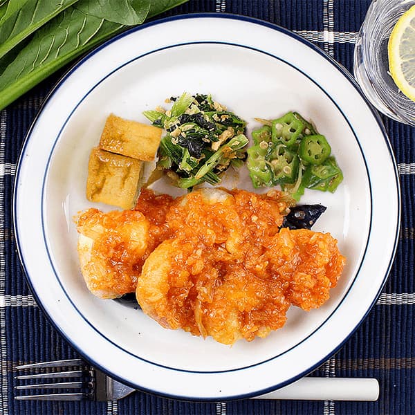 せっかくのお魚メニューなので定食風にしてみました。お皿を分けると夕食などにしても手抜き感がないですよね。