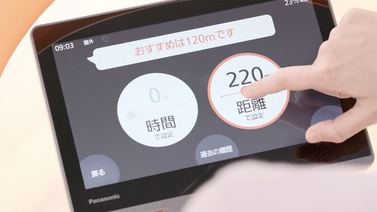 そこで開発されたのが、より気軽に楽しく歩行トレーニングができる施設向けサポートロボット「Walk training robo」だ。
