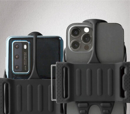 耐久性と柔軟性のあるシリコン素材で、殆どのスマホをケースに付けたままでもガッチリと固定する。