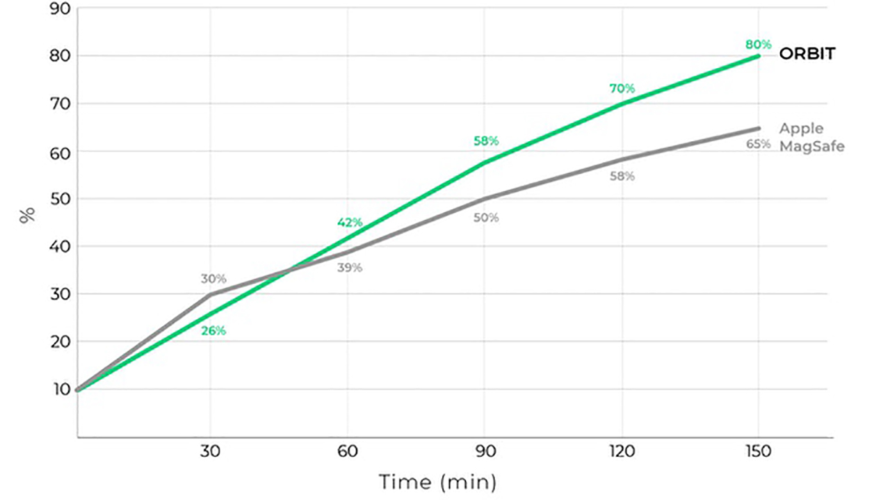 さらに専用充電器の「Orbit Wireless Charger」を使えば、AppleのMagSafe充電器より24%速くワイヤレス充電ができるという。