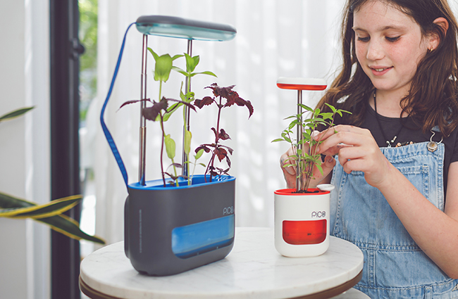 「Pico Max」は、屋内農園でも採用されているマルチスペクトルLEDライトを採用。植物に最適な波長の光を自動照射し、太陽光の届かない室内でも植物を育てられる。ライトの高さは植物の成長具合に合わせて調整可能。