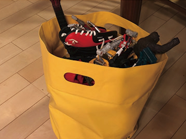 屋内では、子供のおもちゃ入れからランドリーバッグ、ゴミ箱にもなり、使い勝手はバッチリだ。