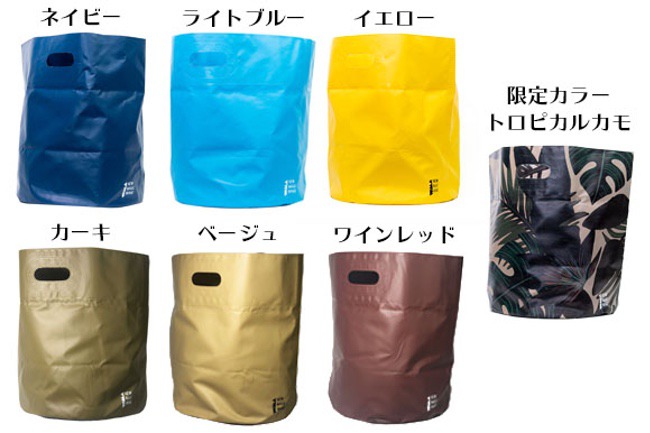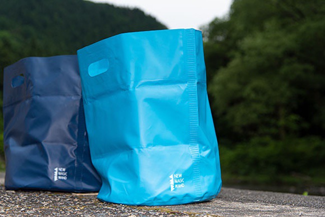 「タープバッグ」は、テントや船の帆、トラックの幌、垂れ幕などに使われるPVC素材でできたバッグ。