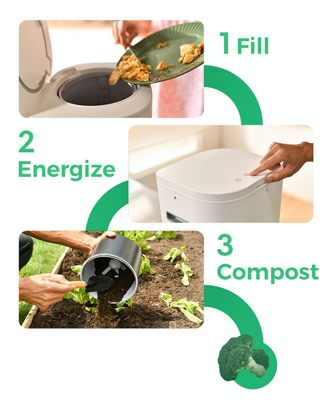 「THRiVE」は肉や骨、野菜、卵の殻など2.5リットル分の生ごみを粉砕して熱を加え、わずか2時間半で堆肥に変える。