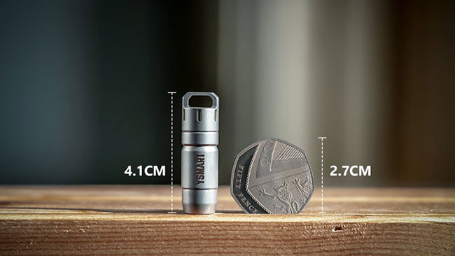 本体の長さは約4.1cm。素材違いで2種類のラインナップがあり、チタン製は重さ12g、銅製は重さ18gと非常に軽い。