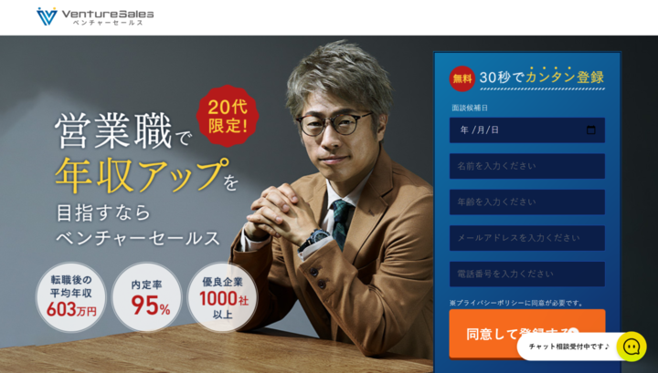 20代限定の求人サービスであり、年収アップできる営業職の求人のみを取り扱っています。給与の向上が転職目的の方におすすめです。