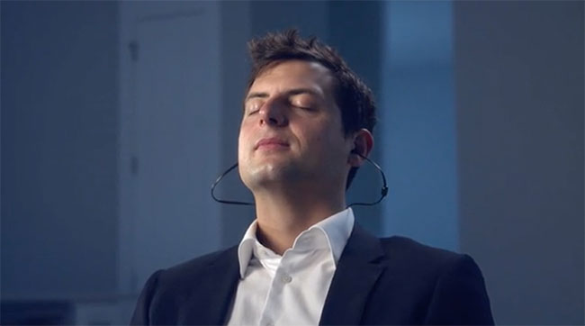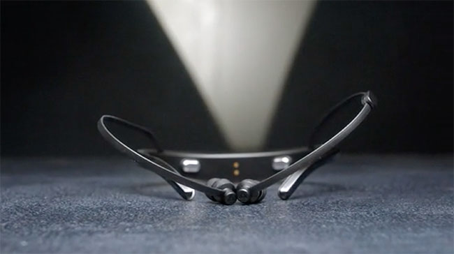 「VIE ZONE」はニューロフィードバックと音楽を利用したイヤホン兼脳波計。両耳と首の後ろ2箇所に搭載したセンサーで、脳波を測定する。それを専用アプリのAIが分析し、集中力アップに適した音楽を流してくれる。