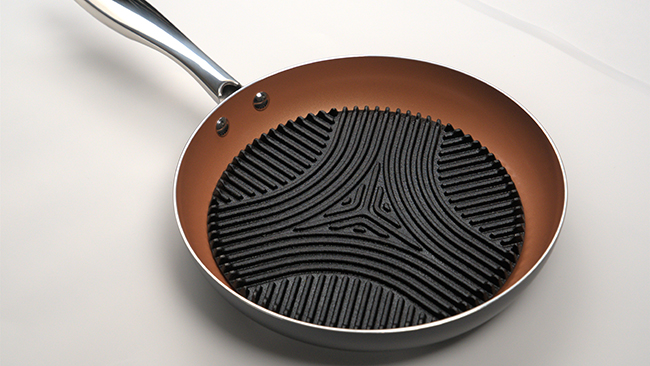 鋳物の特性である高い熱伝導性を持つ上、独自の溝加工で余分な油や水分をカット。風味豊かでありながらヘルシーな料理に仕上げられる。