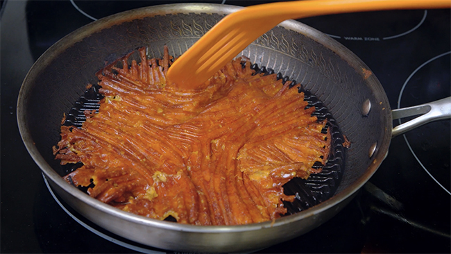 天然の植物性オイルによるコーティングで焦げつきにくく、チーズを焼いてもすっと剥がせるほど。