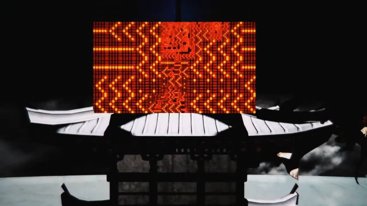 Omodakaさんご自身曰く、「日本の民謡とダンスビートとチップチューンが結びついた音楽を、実際に演奏するときに送出されている映像と一緒に演奏するのがOmodakaのパフォーマンスになっている」とのこと。