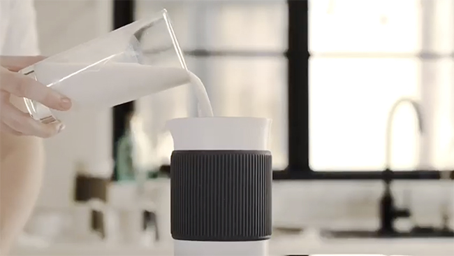 ミルクポットには牛乳を注いで、好きなモードを選べばOK。たった3分でエスプレッソとフォームミルクができる。