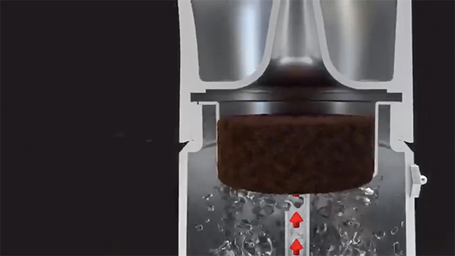 エスプレッソは、沸騰した水から発生する気泡の圧力で空気をフィルターへ押し出すことで、3分という短い時間でありながら本格的なイタリアンエスプレッソに仕上がる。
