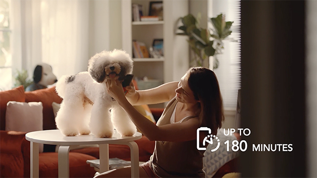 バッテリー充電式で、フル充電時はワイヤレスで連続3時間使用可能。複数のペットも一気にトリミングできる。