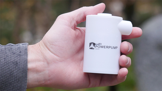 電動エアポンプ「Power Pump」は、エアマットの空気入れを30秒で完了できる上、3,600mAhのモバイルバッテリーとしても使用可能。