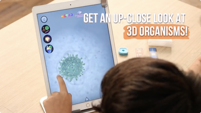 「AR Micro-Blocks」は、実験をより身近にするスマホ・タブレット用のカメラ拡張キットだ。デバイスに装着すれば、顕微鏡・マクロ撮影用のレンズ・プロジェクターとして活躍。AR対応のスライドを使用すれば、立体的なモデルを使った観察を可能にしてくれるアイテムだ。
