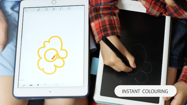 「myFirst Sketch Book」は、主にビジネスシーンで活躍するよう設計されている。Bluetoothを通じて、スマホやPCなどのデバイスとリアルタイムで連動可能。パッドに書いている内容を、すぐにデバイスへと反映できるのだ。