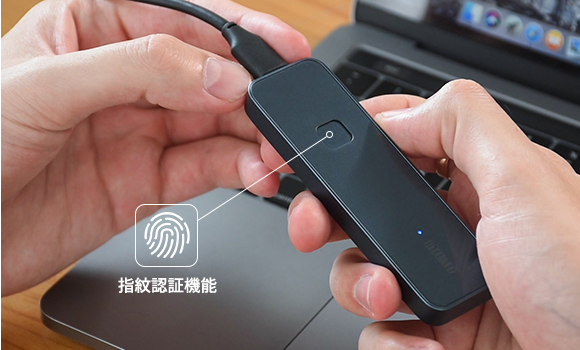 本体には指紋認証機能がついており、情報の暗号化には安全性が高いAES-256bitを採用。両方を組み合わせることで、素早く安全にデータにアクセスできる。また、パスワードを10回間違えると接続を自動で切断するため、総当たりのサイバー攻撃による被害拡大を防げるという。