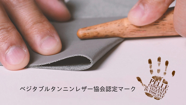 革は、食用牛の副産物で本来なら処分されてしまう天然フルグレインレザーを採用。イタリアの革なめし工場「Bridge」の植物タンニンを使った伝統的ななめし技術で加工している。