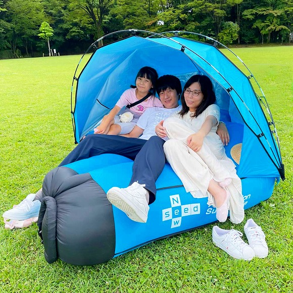 日差しも気候も穏やかになってきましたね。そうすると、家族や友人と公園や海でまったり過ごしたくなるのは私だけでは無いはず。「水陸両用エアークッションテント」は数秒でふかふかに膨らみ、屋外で寝心地のいい空間が作れる特大クッション。