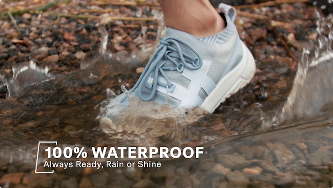 靴底には特殊なソールを採用。通気口を配置しており、防水保護しながらも熱や空気を排出できるとのこと。また天然ゴム製のグリップは滑りにくく、高いクッション性を発揮。軽量かつ通気性にも優れており、スポーツ時でも中が蒸れにくく快適な履き心地が体験できそうだ。
